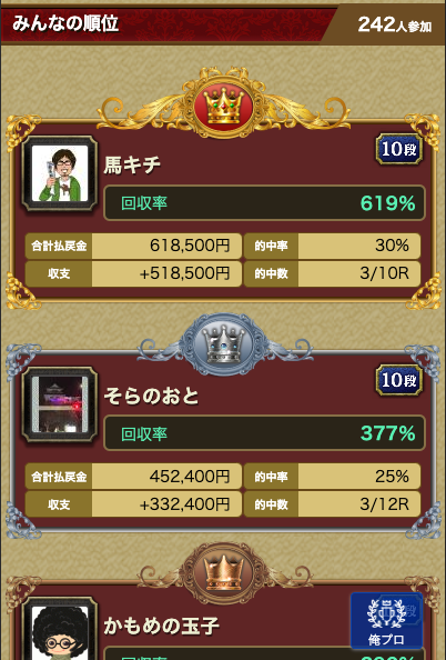 もう4週連続ぐらいでボロ負けしてやる気を全く失いつつある競馬予想。だが今日はAIの予想が死ぬほど好調で俺プロランキングトップとなった。