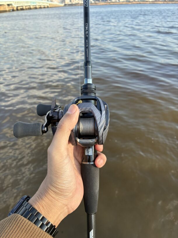 このロッドはボトムチニング用ではあるがそこまで固くはないのでちょっとしたトップの釣りでも活躍しそうな印象。ポッパーなどのトップウォータールアーを投げて操作性を次回は試してみようと思う。
